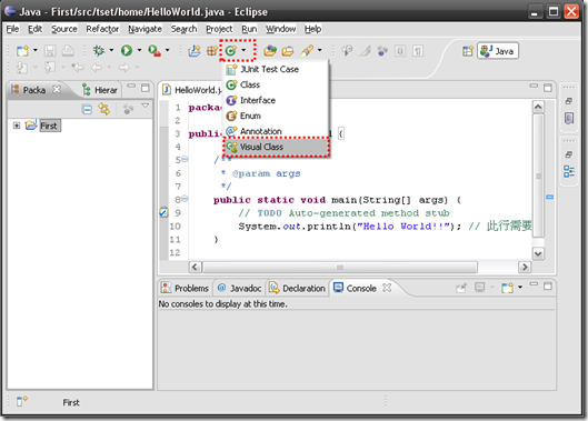 重起 eclipse 後,會發現多了 Visual Class 選項。