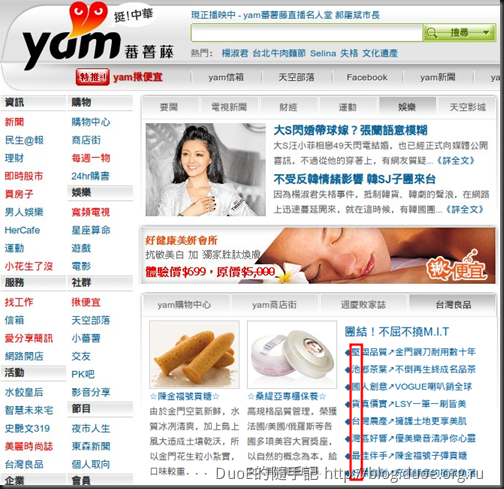 Yahoo 首頁的熱門話題(Yahoo 唯一沒有移除的部份,今天 2010.11.19 每個人應該都可看到,不需運氣 "恰巧" 遇到。)