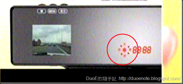 這是行車記錄器的螢幕,上方有三個操作按鈕,可以關掉收音、關閉螢幕顯示、鎖定某段錄影檔案防止被循環錄影時把存檔影片蓋掉。