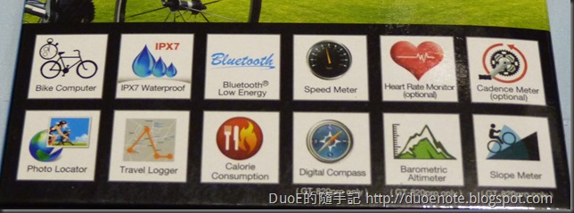 這個 GPS 紀錄器原本是設計給腳踏車和登山用的,具有電子羅盤的功能,提供使用者高度、距離、坡度和里程等相關訊息