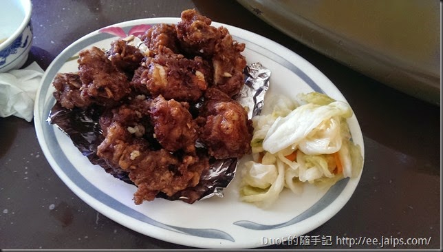鍋貼吃到一半,才發現牆上有寫著店裡的招牌菜,除了煎蛋跟鍋貼有點到,其他根本都錯過了,不顧肚子已經快滿出來,硬是又點了一道香酥排骨。排骨肉炸得是外酥內嫩,旁邊還配了泡菜,利用泡菜的酸甜來解炸排骨的油膩,越吃越順口,端上來沒多久就被我們嗑光。